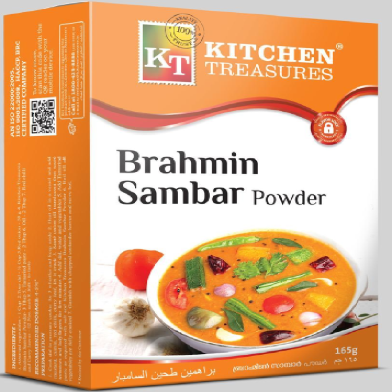 Create authentic South Indian sambar with KT Brahmin Sambar Masala, available in a 10-pack of 165g each. This unique blend of premium spices is specially crafted to deliver the rich, traditional flavours of Brahmin-style sambar. Perfect for making a flavourful lentil-based stew, it enhances the taste with its balanced mix of spices. Ideal for home kitchens or restaurants, this masala ensures a delicious and authentic sambar every time.
